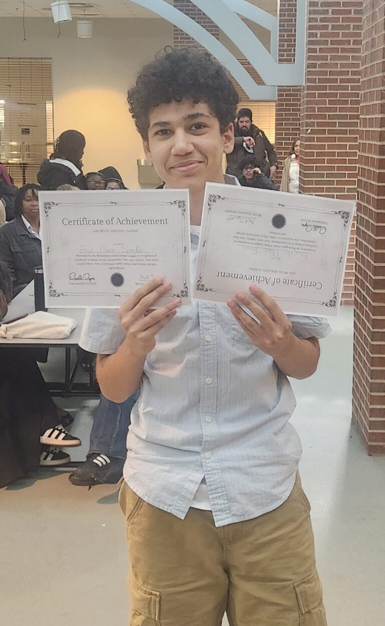 In Rookie: Huck / Franklin, Micah / Lenoxx, Lea / Wynter from Stuart Hobson and Vera / Louisa from Eliot Hine all went undefeated – showing how the best middle school debate in the region still runs through Capitol Hill / Ward 6. In fact, the two schools were the first 8 award winners. Kettering’s Glory / Kristofer and Idaraobong / Chinua, were right behind them, both in team awards and speaker awards.